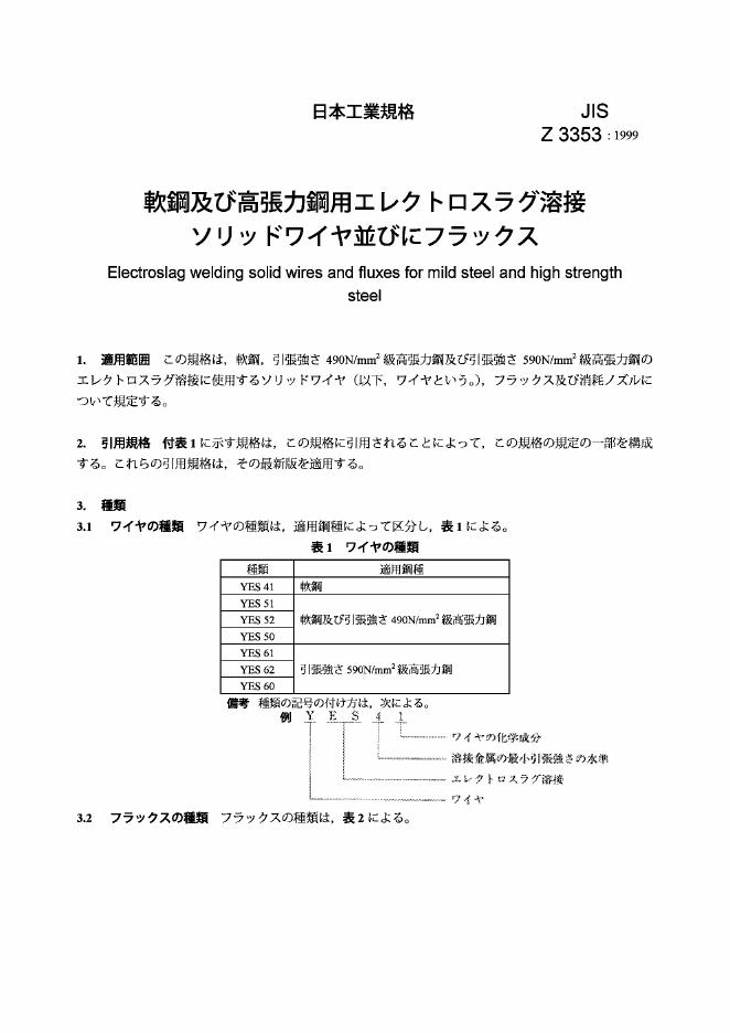 JIS Z3353-2007 低碳钢和高强度钢用电渣焊实心焊丝和焊料