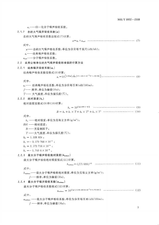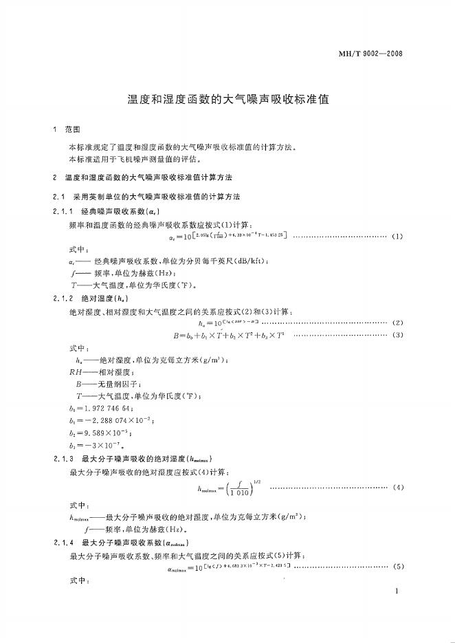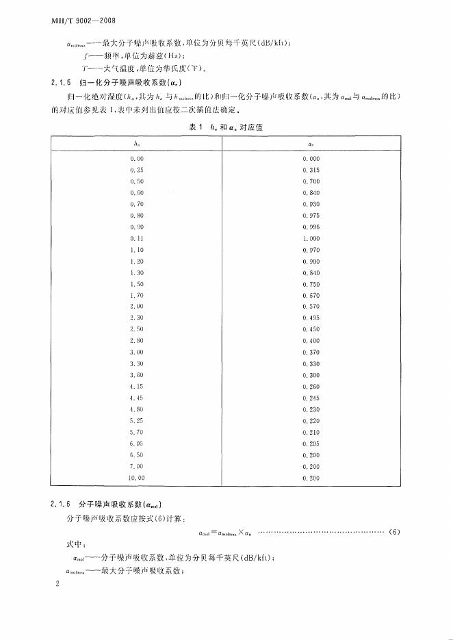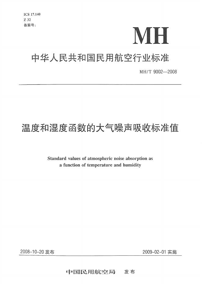 MH/T 9002-2008 温度和湿度函数的大气噪声吸收标准值