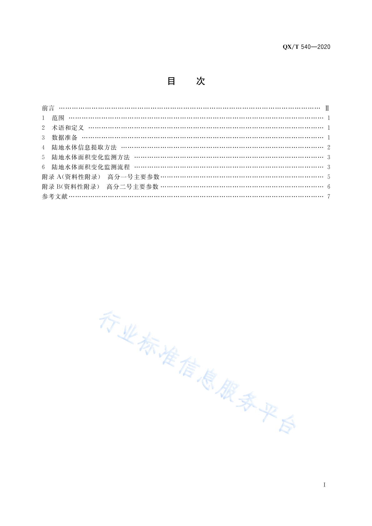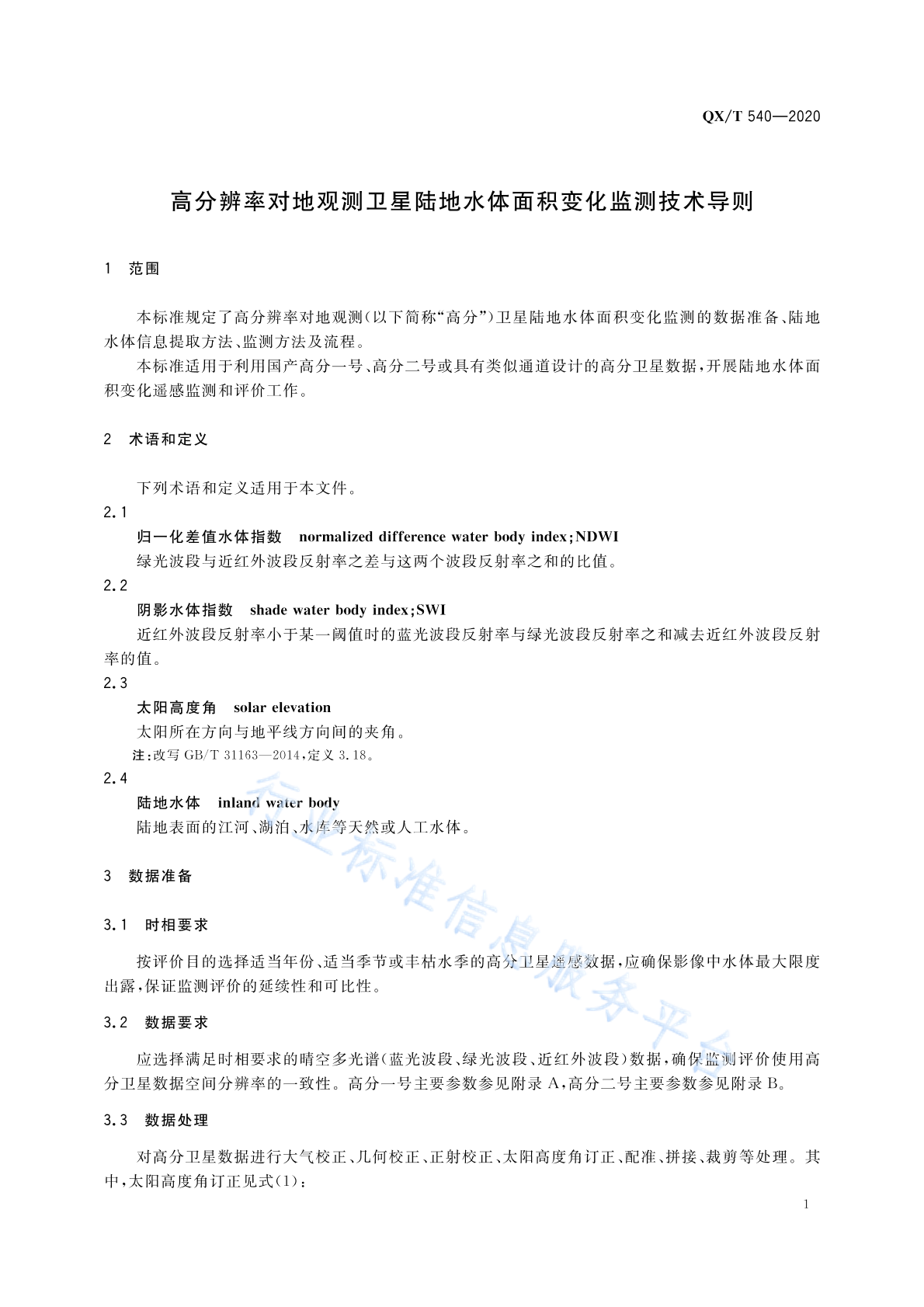 QX/T 540-2020 高分辨率对地观测卫星陆地水体面积变化监测技术导则