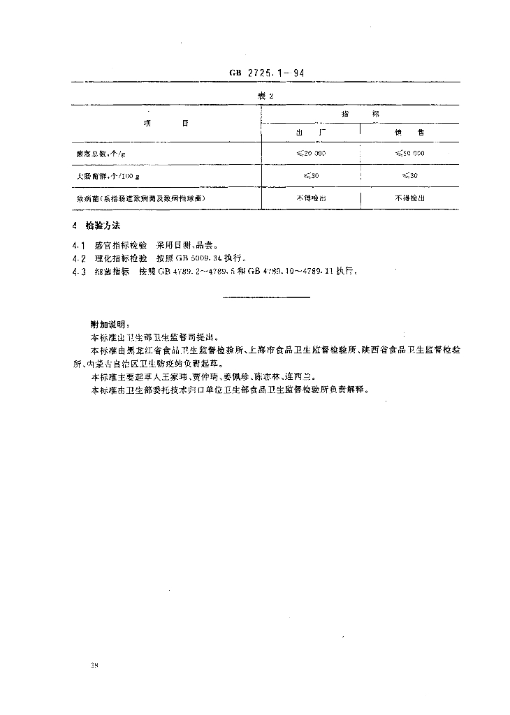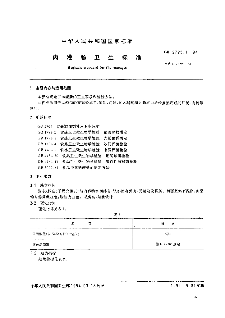 GB 2725.1-1994 肉灌肠卫生标准