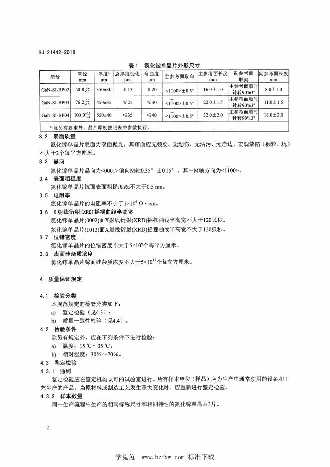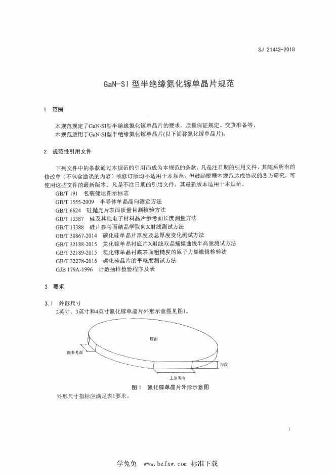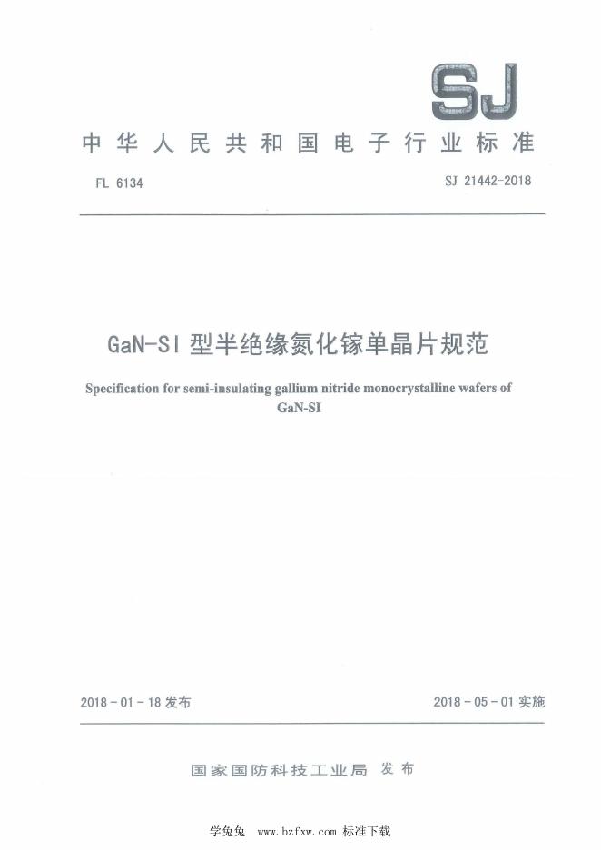 SJ 21442-2018 GaN-SI型半绝缘氮化镓单晶片规范