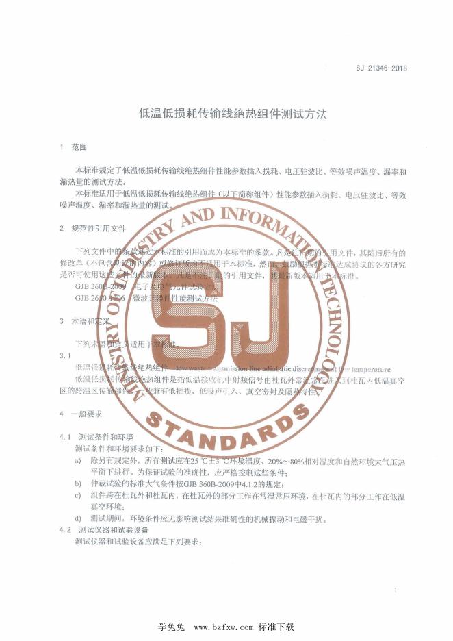 SJ 21346-2018 低温低损耗传输线绝热组件测试方法