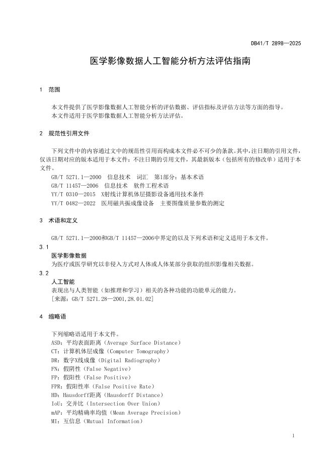 DB41/T 2898-2025 医学影像数据人工智能分析方法评估指南
