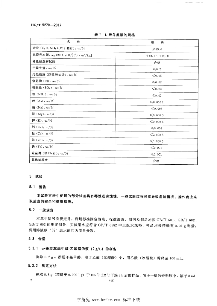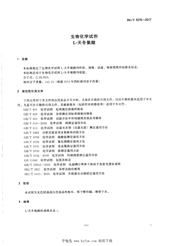 HG/T 5270-2017 生物化学试剂 L-天冬氨酸