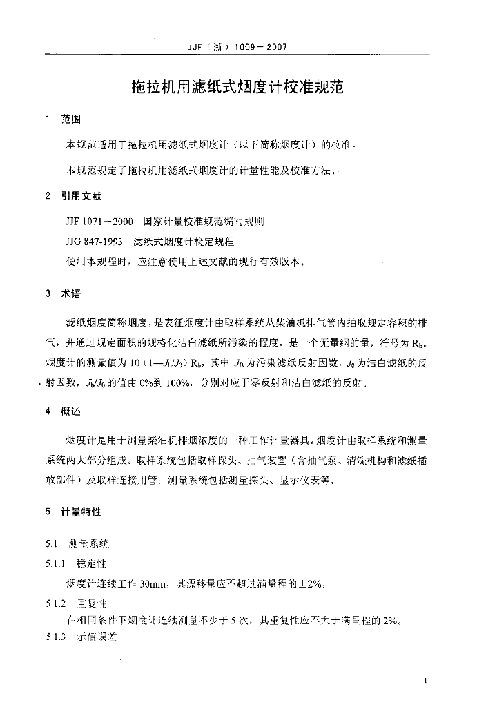 JJF(浙)1009-2007 拖拉机用滤纸式烟度计