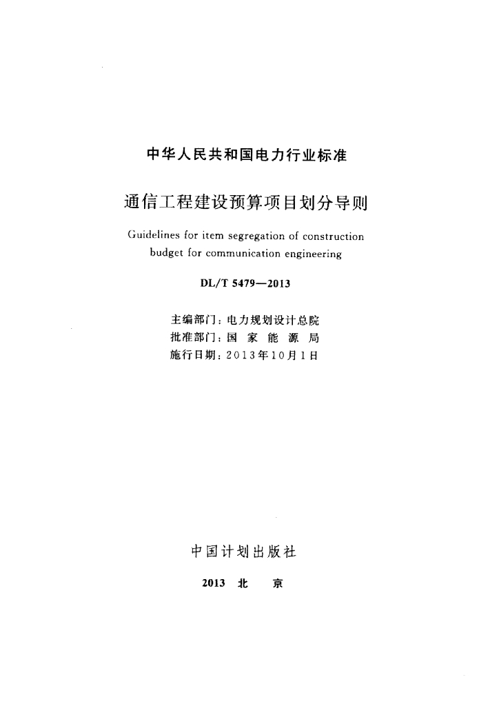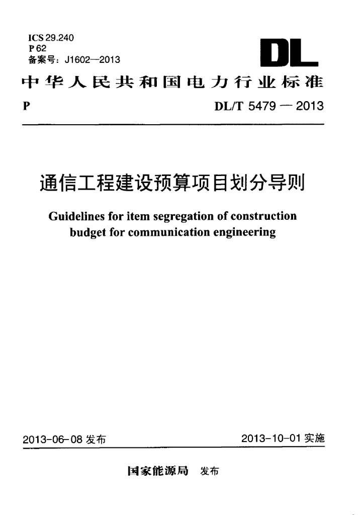 DL/T 5479-2013 通信工程建设预算项目划分导则