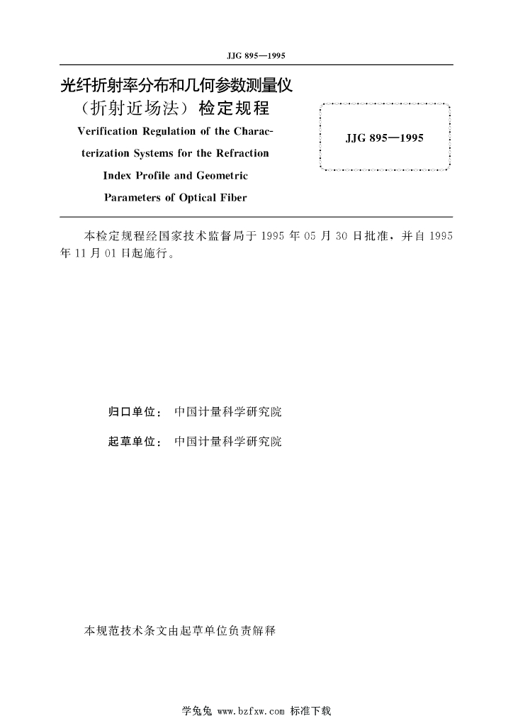 JJG 895-1995 光纤折射率分布和几何参数测量仪(折射近场法)