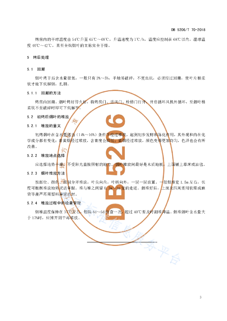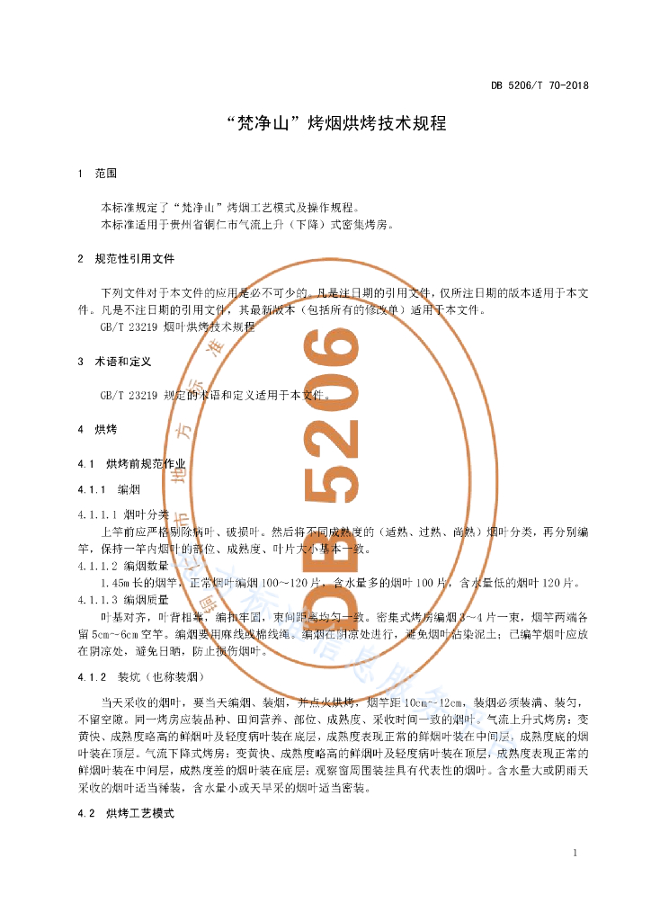 DB5206/T 70-2018 “梵净山”烤烟烘烤技术规程