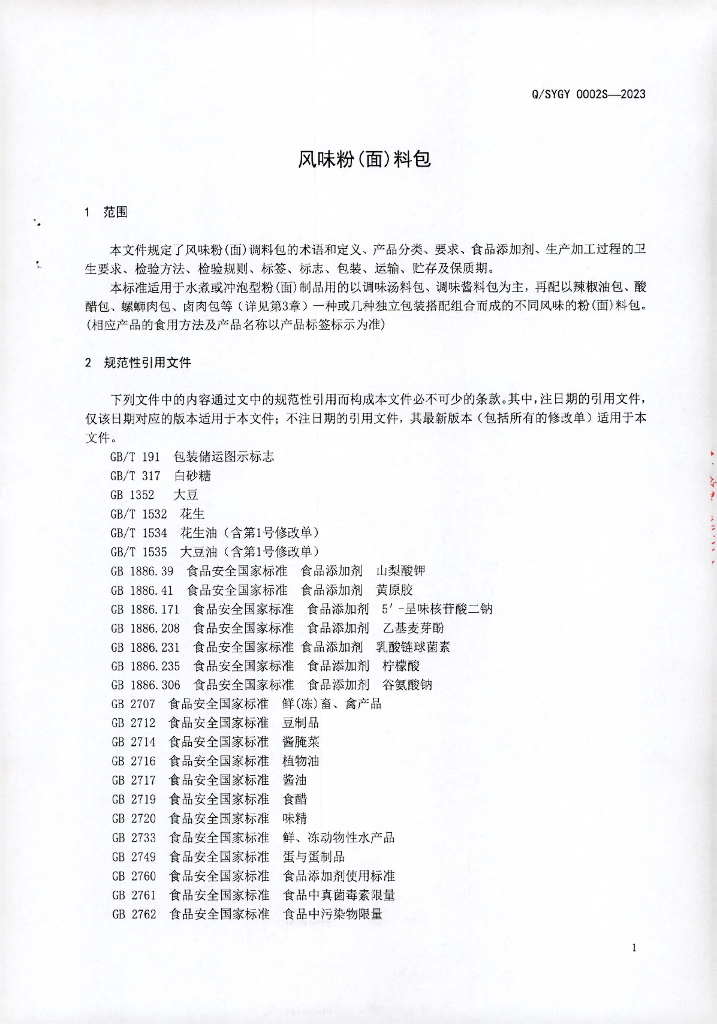Q/SYGY 0002S-2023 风味粉(面)料包