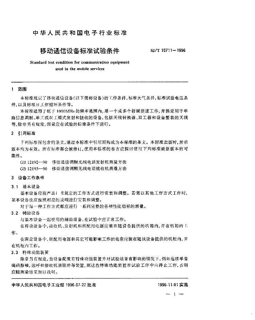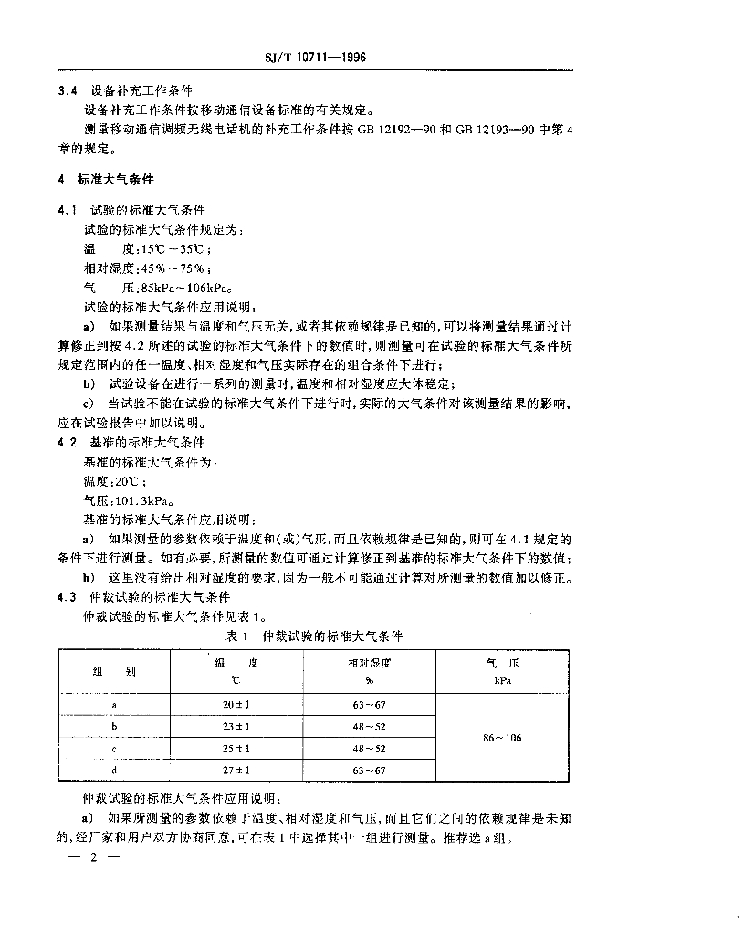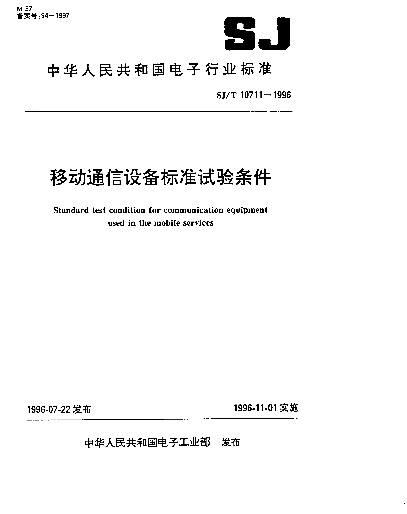 SJ/T 10711-1996 移动通讯设备标准试验条件
