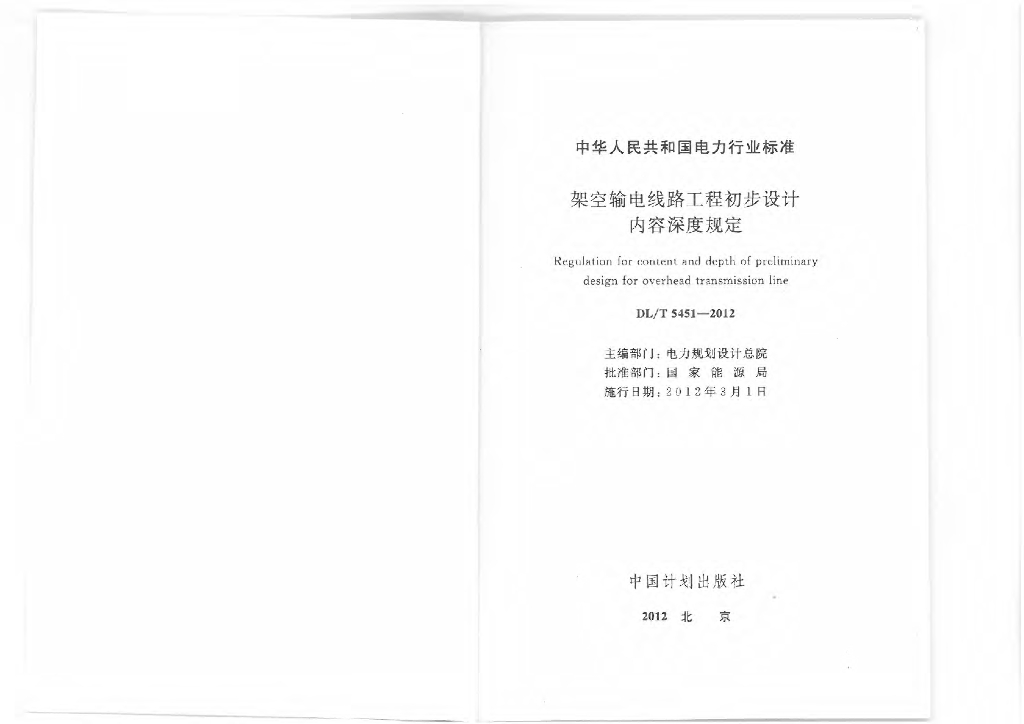 DL/T 5451-2012 架空输电线路工程初步设计内容深度规定