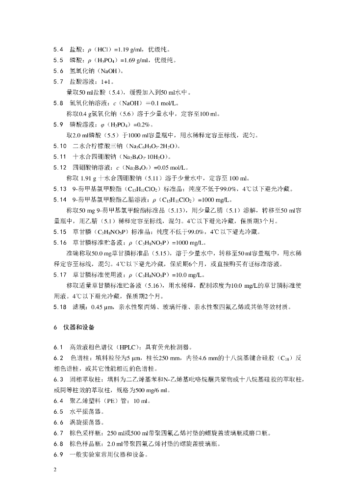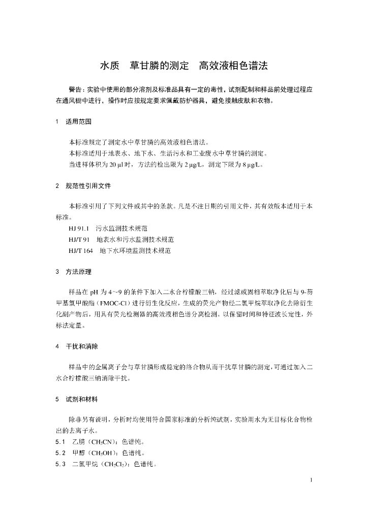 HJ 1071-2019 水质 草甘膦的测定 高效液相色谱法
