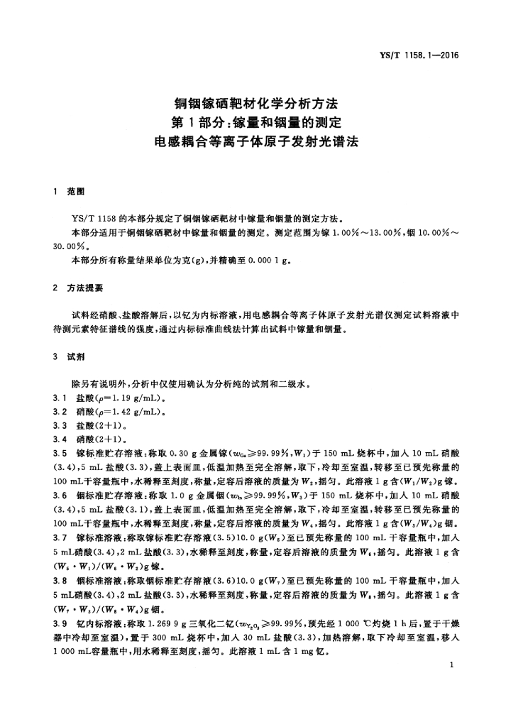 YS/T 1158.1-2016 铜铟镓硒靶材化学分析方法 第1部分:镓量和铟量的测定 电感耦合等离子体原子发射光谱法