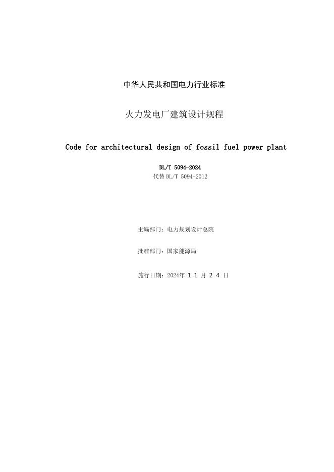 DL/T 5094-2024 火力发电厂建筑设计规程(附条文说明)
