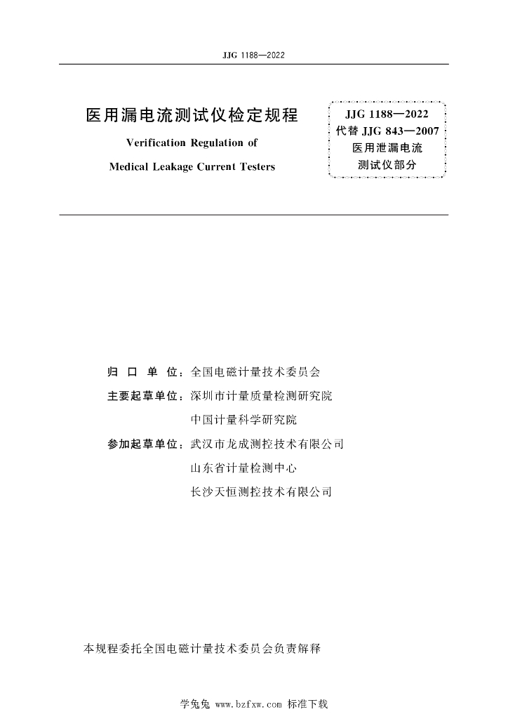 深圳市计量质量检测研究院、中国计量科学研究院、武汉市龙成测控技术有限公司、山东省计量检测中心、长沙天恒测控技术有限公司