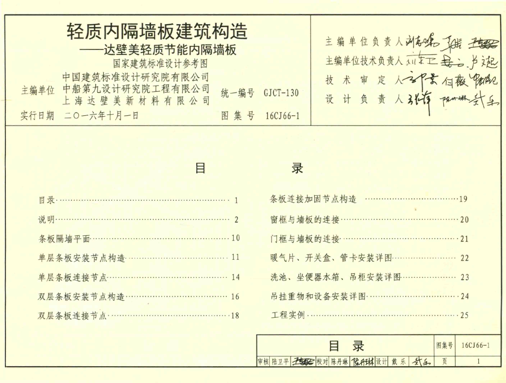 16CJ66-1 轻质内隔墙板建筑构造——达壁美轻质节能内隔墙板参考图集