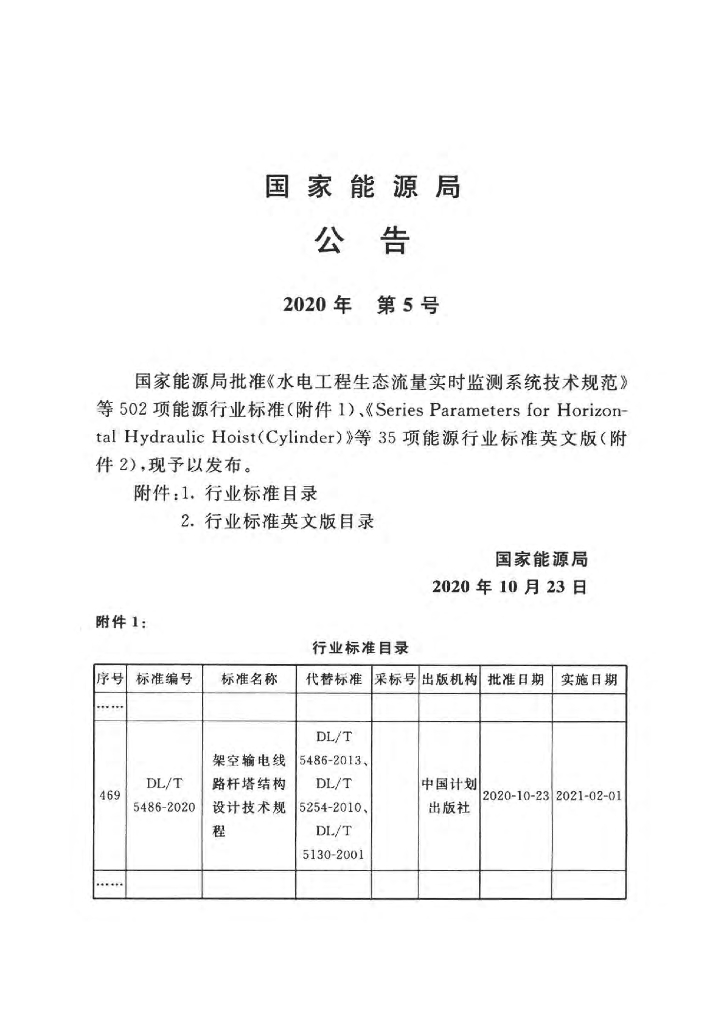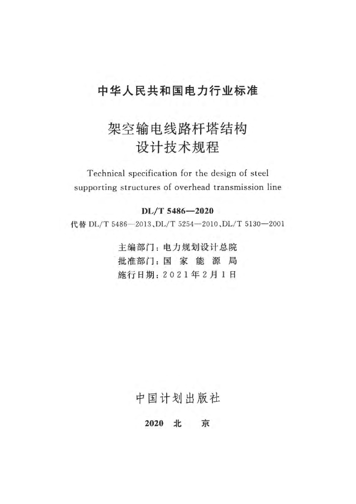 DL/T 5486-2020 架空输电线路杆塔结构设计技术规程(附条文说明)