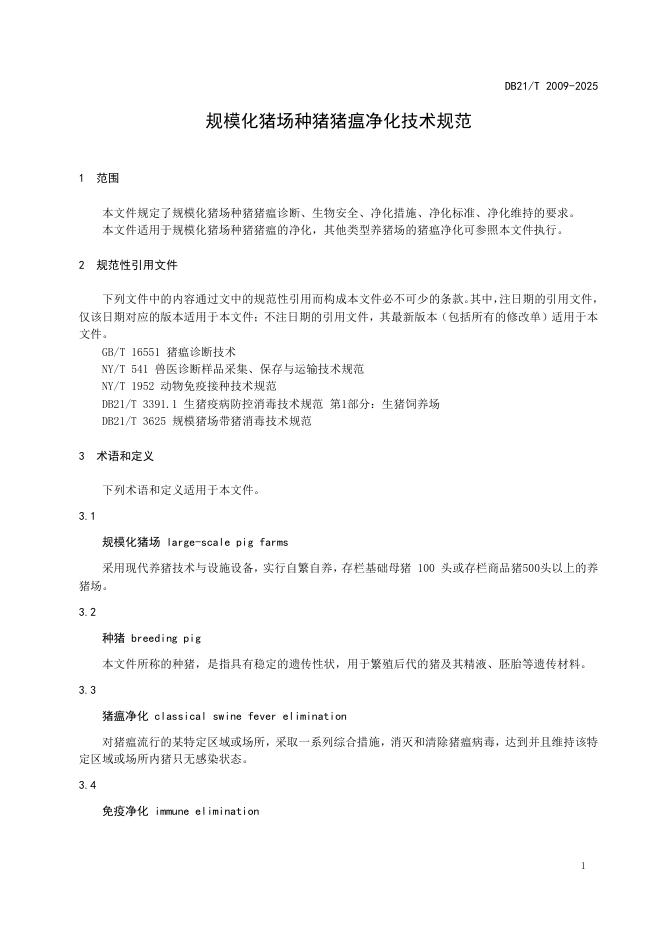 DB21/T 2009-2025 规模化猪场种猪猪瘟净化技术规范