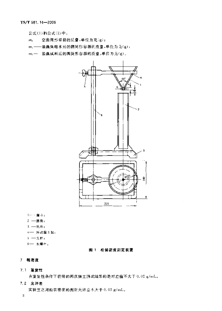 YS/T 581.14-2006 氟化铝化学分析方法和物理性能测定方法 第14部分:松装密度的测定