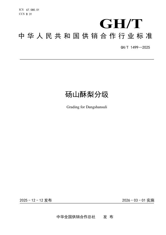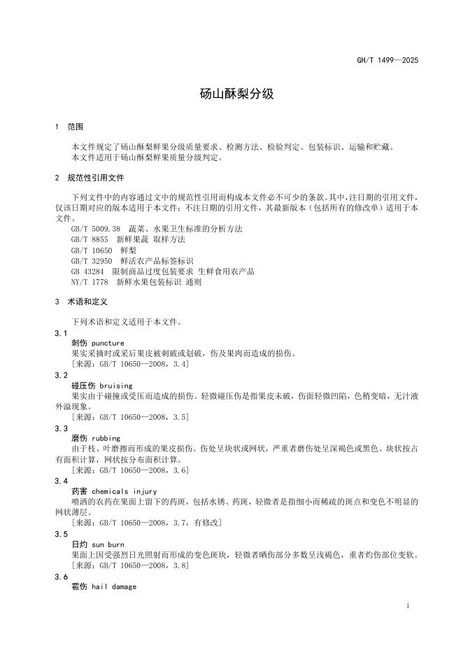 GH/T 1499-2025 砀山酥梨分级