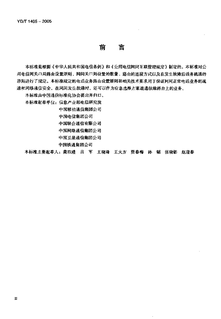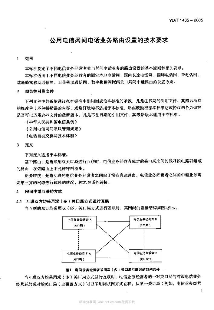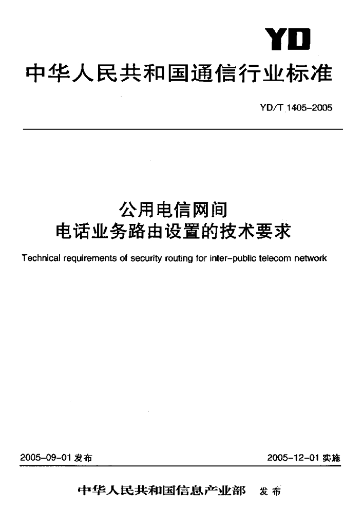 YD/T 1405-2005 公用电信网间电话业务路由设置的技术要求