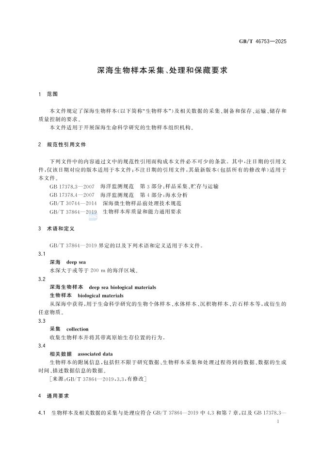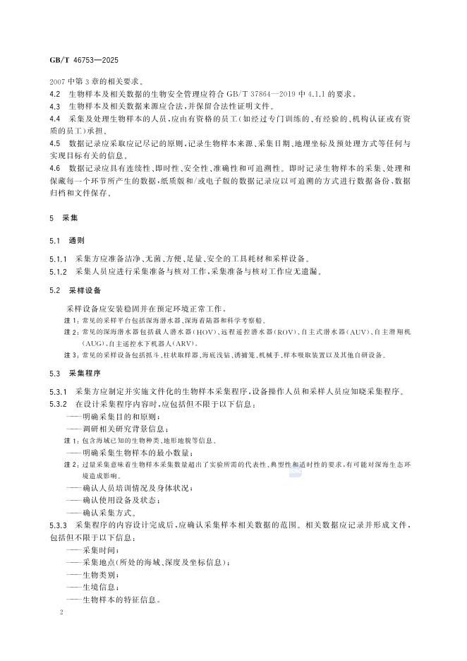 GB/T 46753-2025 深海生物样本采集、处理和保藏要求