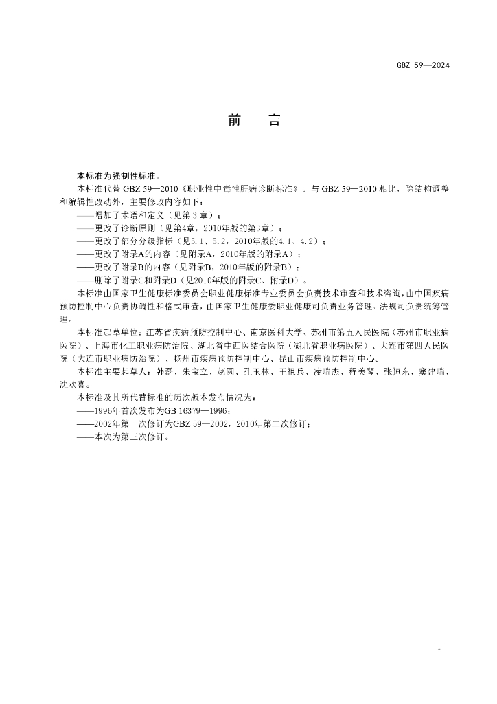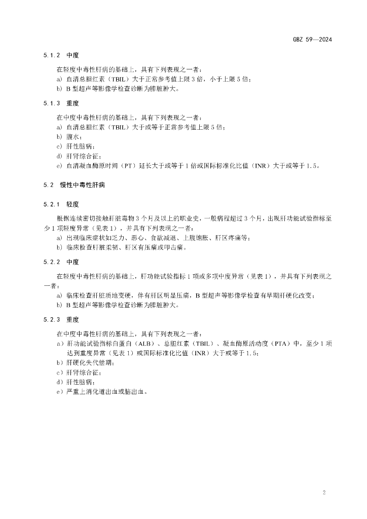 GBZ 59-2024 职业性中毒性肝病诊断标准