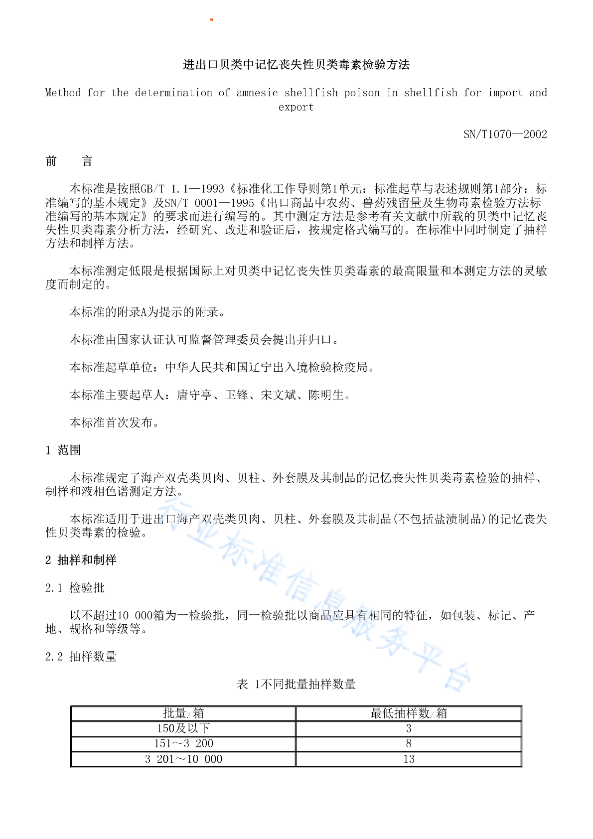 SN/T 1070-2002 进出口贝类中记忆丧失性贝类毒素检验方法
