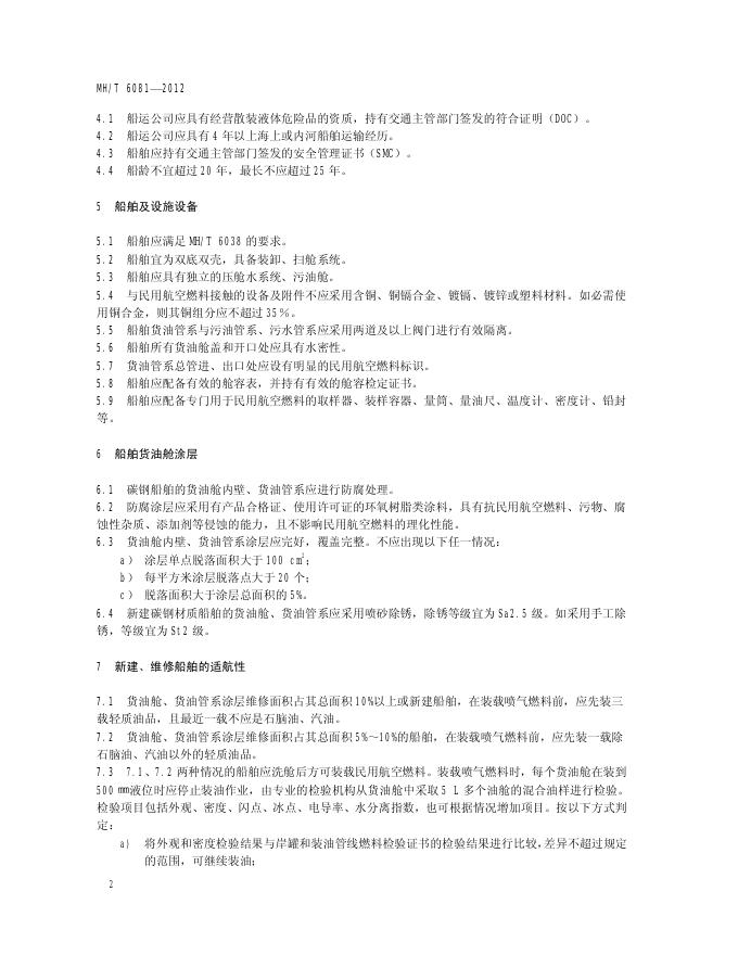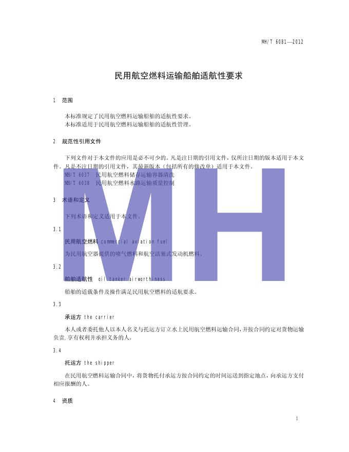 MH/T 6081-2012 民用航空燃料运输船舶适航性要求