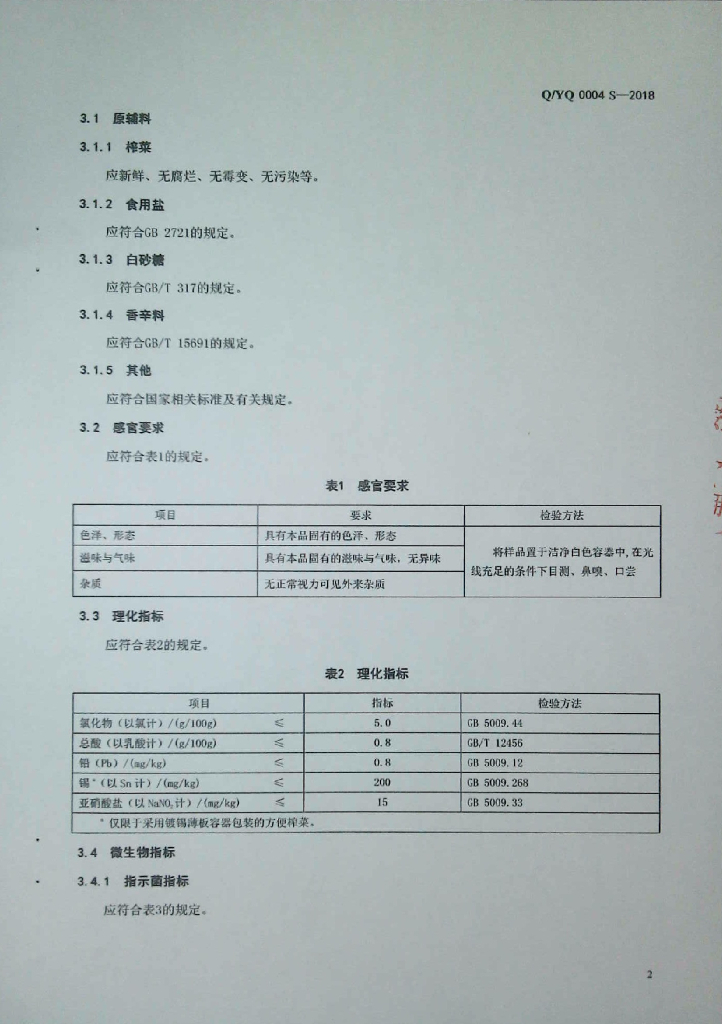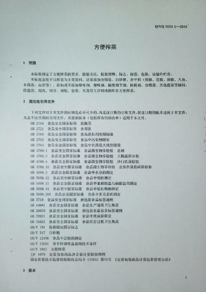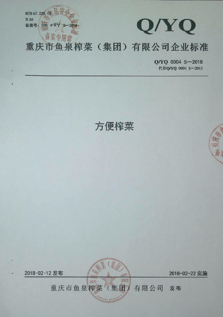 Q/YQ 0004S-2018 方便榨菜