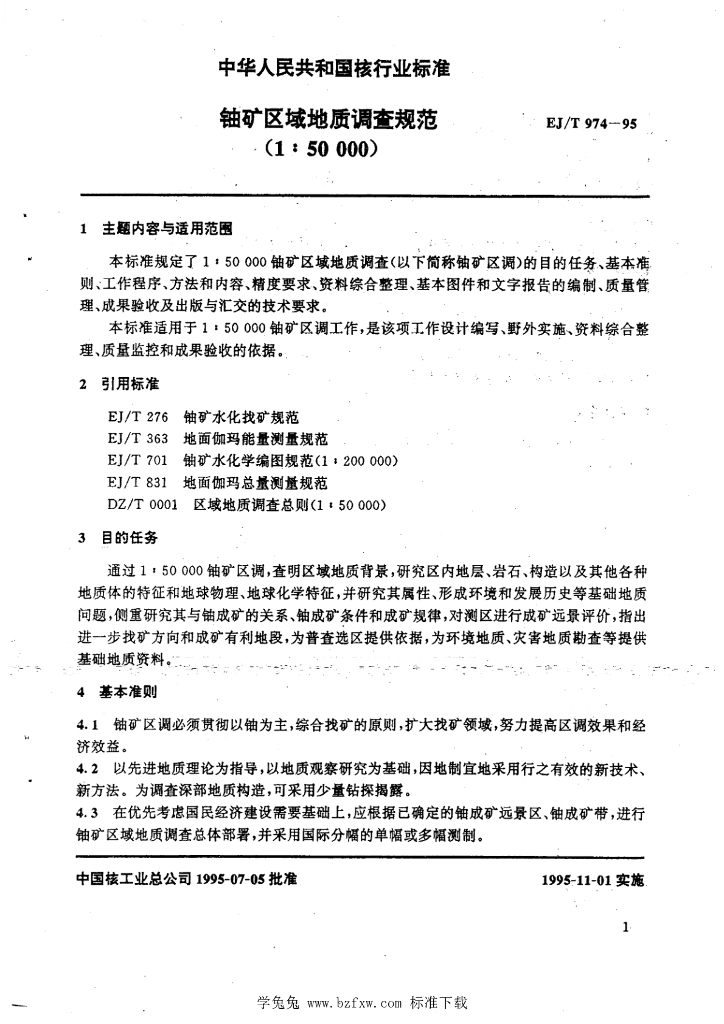 EJ/T 974-1995 铀矿区域地质调查规范(1:50000)