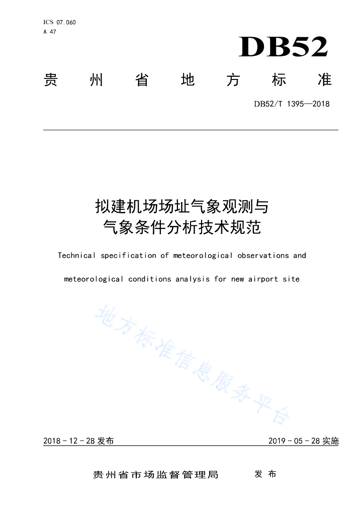 DB52/T 1395-2018 拟建机场场址气象观测与气象条件分析技术规范
