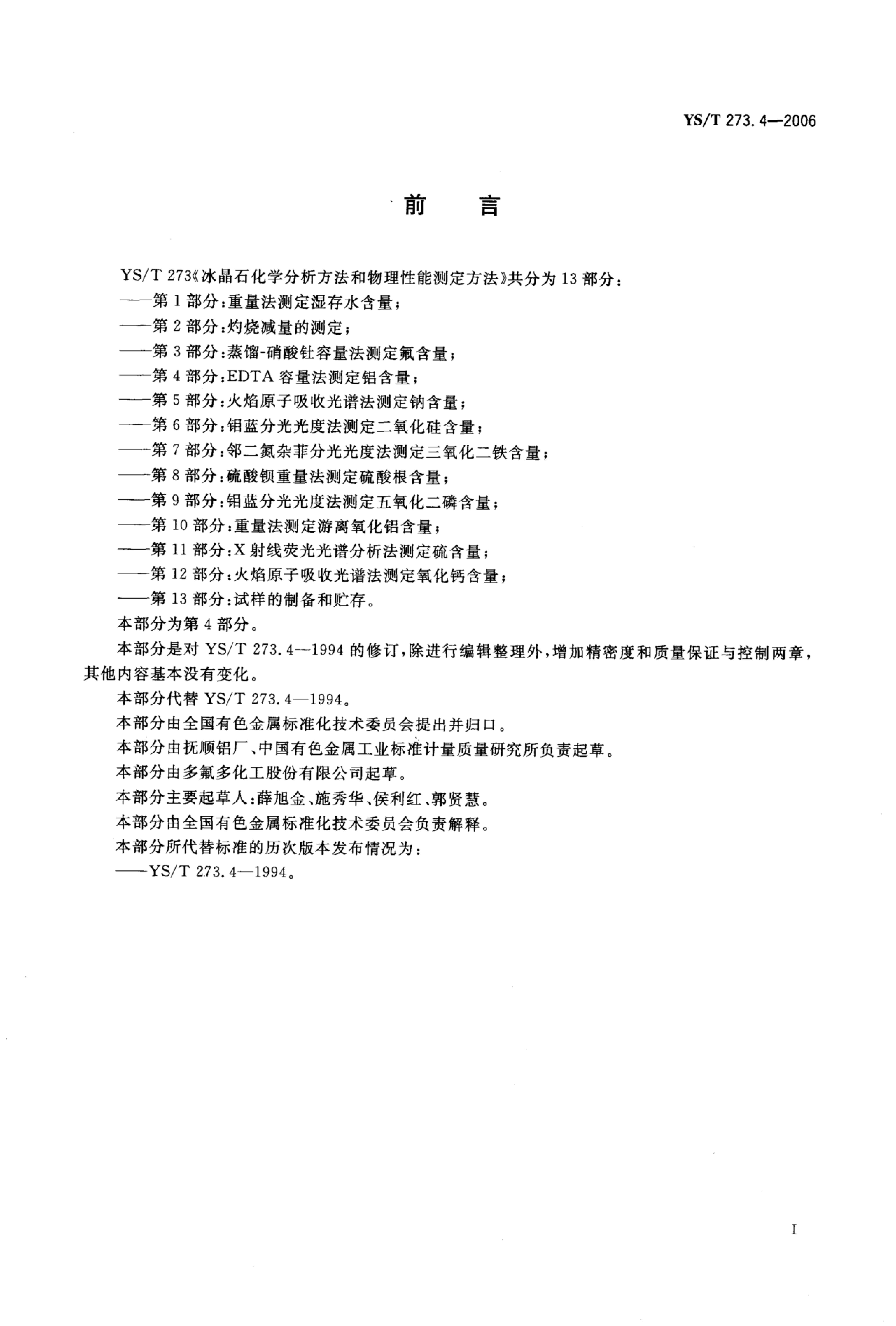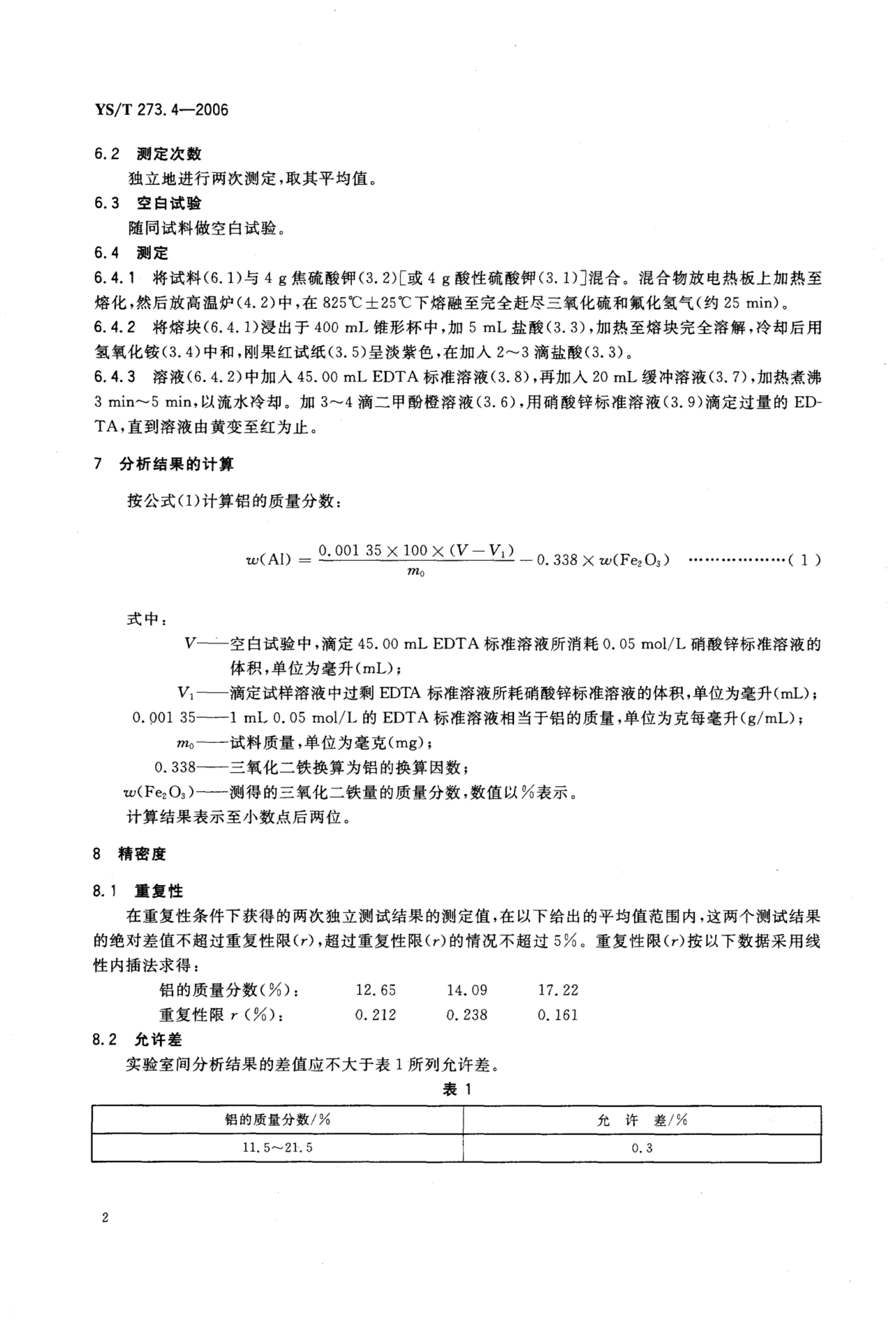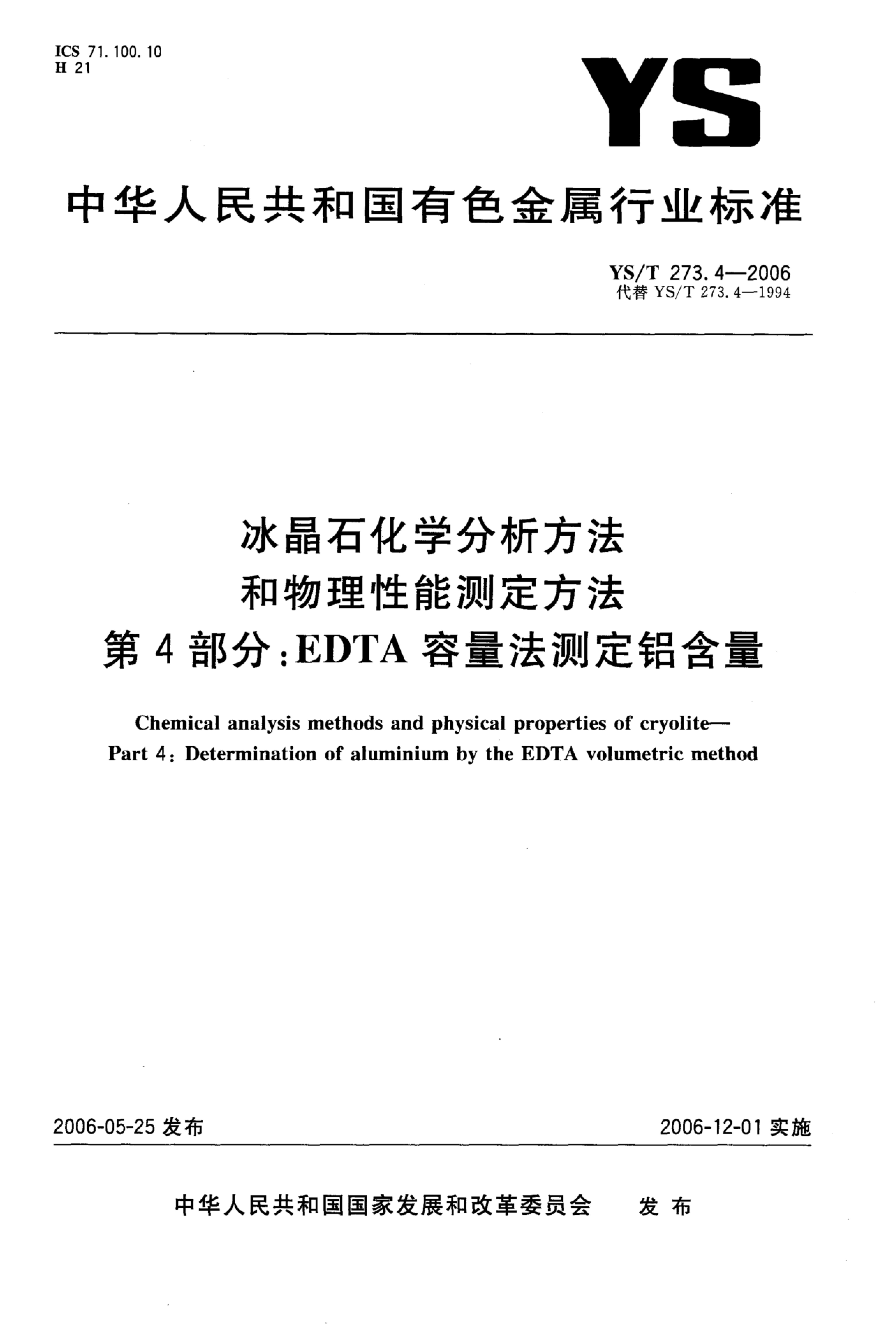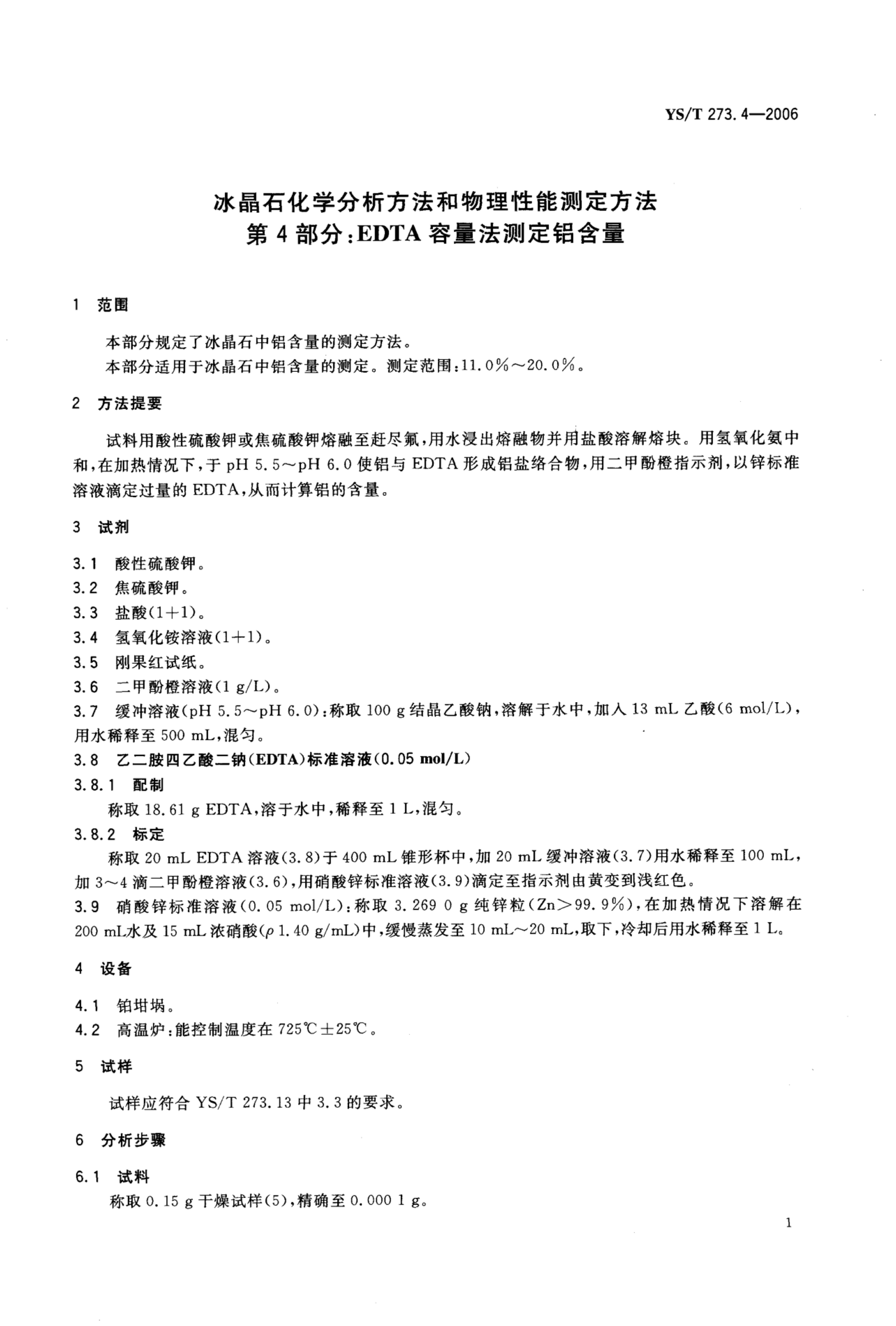 YS/T 273.4-2006 冰晶石化学分析方法和物理性能测定方法 第4部分:EDTA容量法测定铝含量