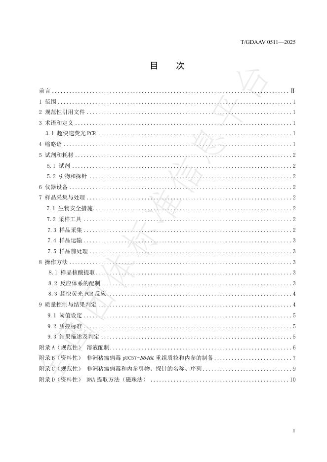 T/GDAAV 0511-2025 非洲猪瘟病毒超快速荧光PCR检测技术规范