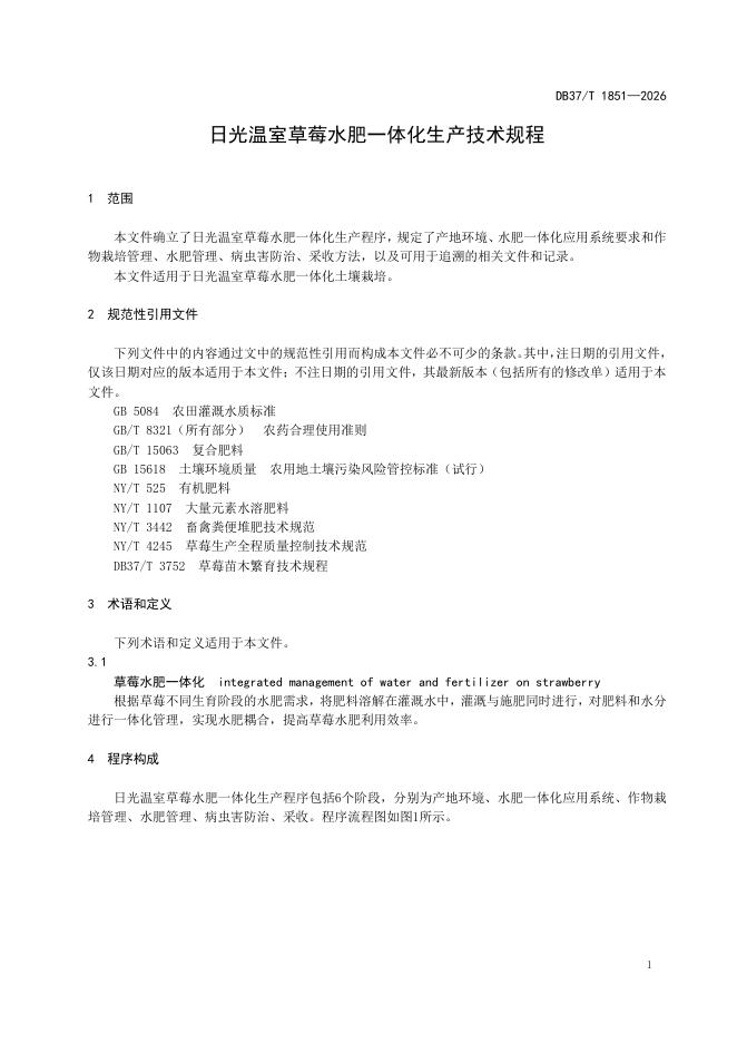 DB37/T 1851-2025 日光温室草莓水肥一体化生产技术规程