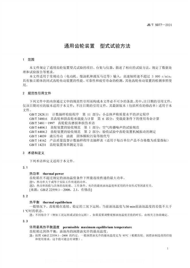 JB/T 5077-2024 通用齿轮装置 型式试验方法
