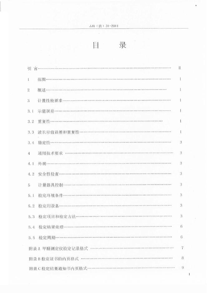 JJG(吉)31-2011 甲醛测定仪检定规程