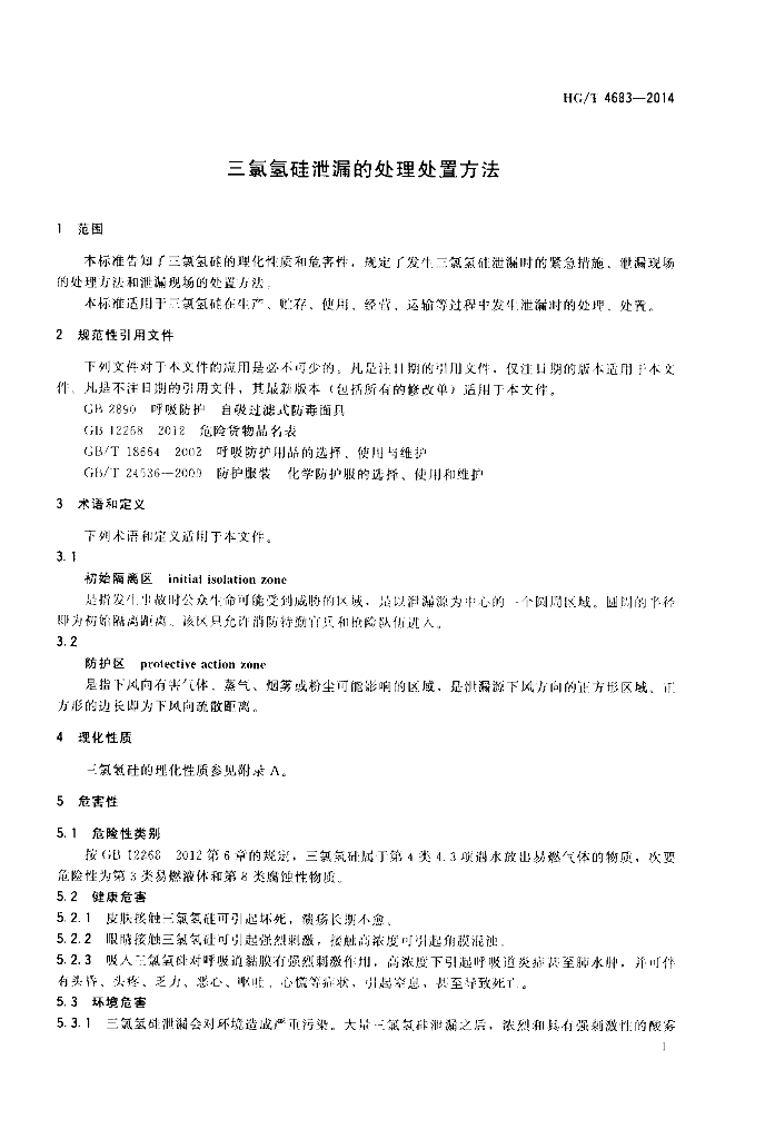 HG/T 4683-2014 三氯氢硅泄漏的处理处置方法