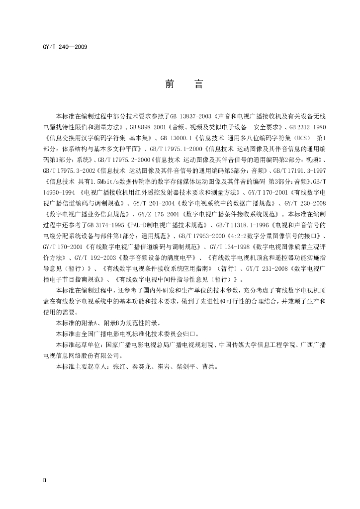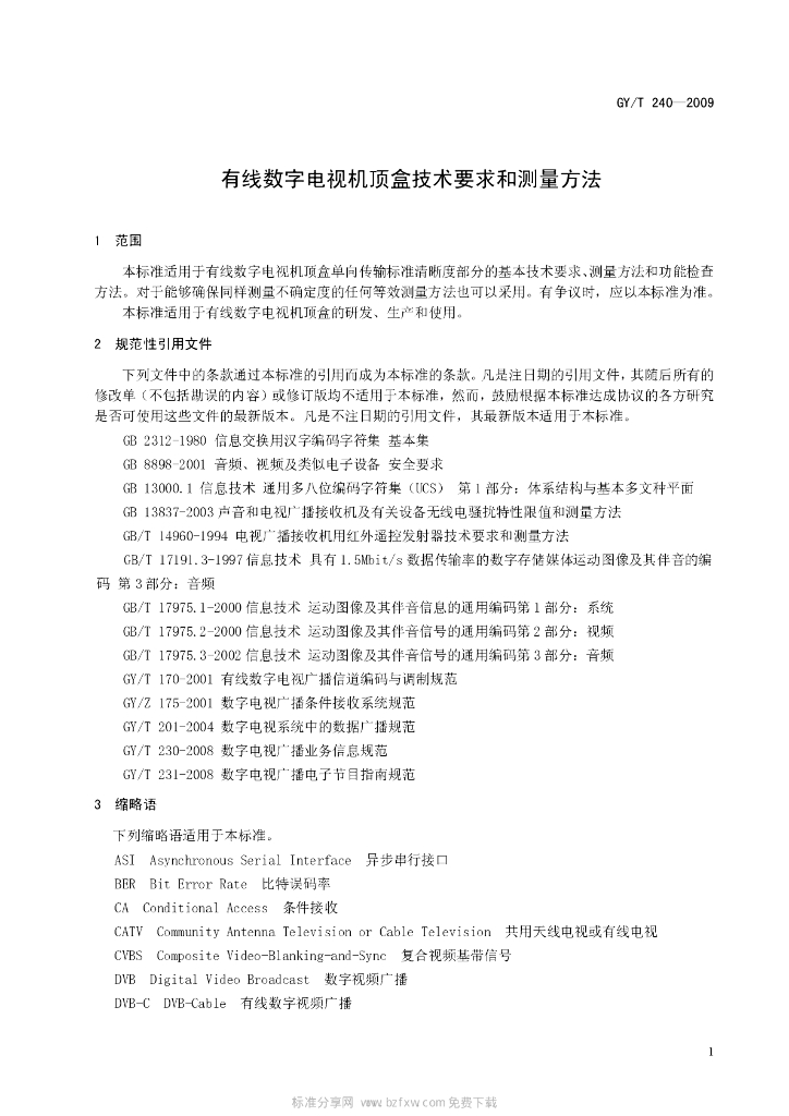 GY/T 240-2009 有线数字电视机顶盒技术要求和测量方法