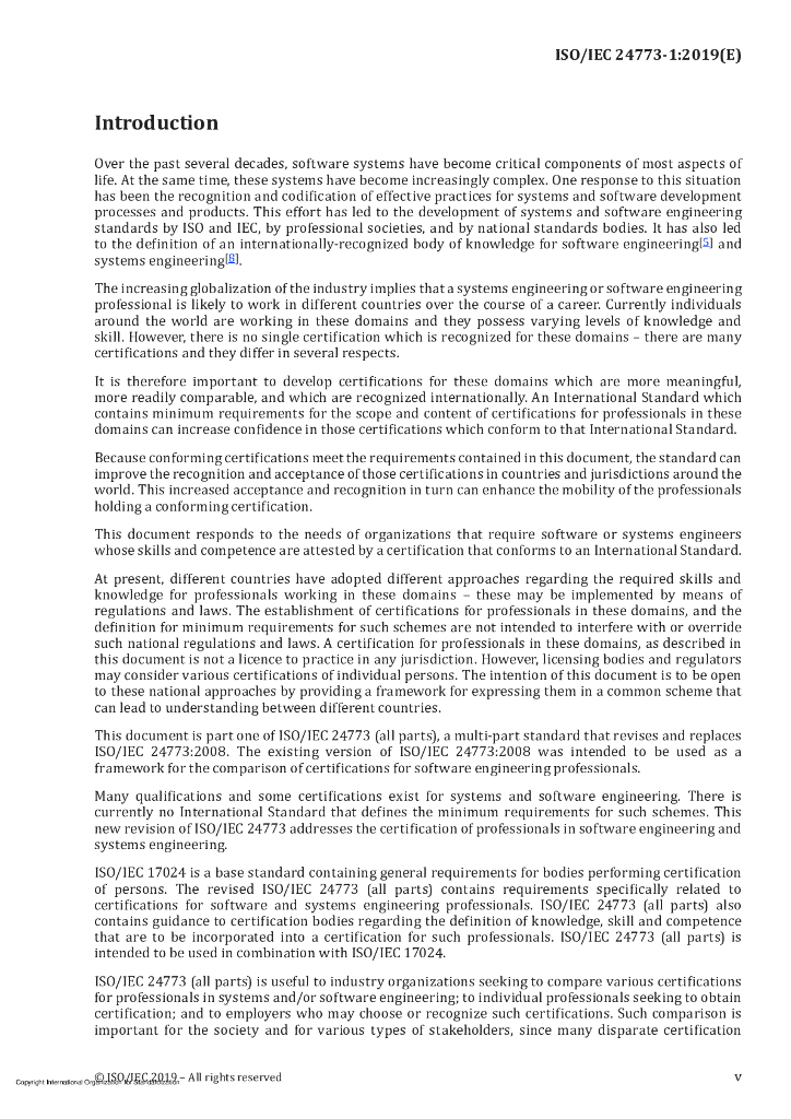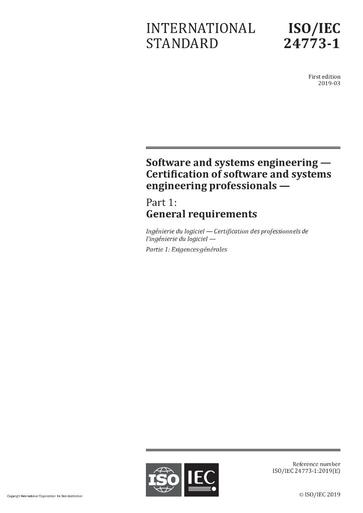ISO/IEC 24773-1-2019 软件和系统工程 软件和系统工程专业人员的认证 第1部分:一般要求