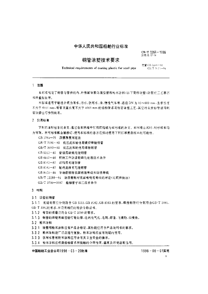 CB/T 3366-1998 钢管涂塑技术要求