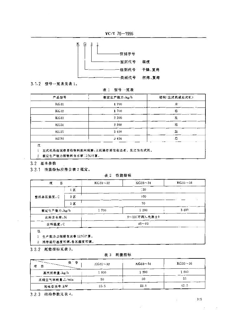 YC/T 76-1996 烟草机械 KG31~36型烟梗复烤机