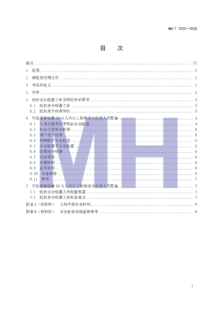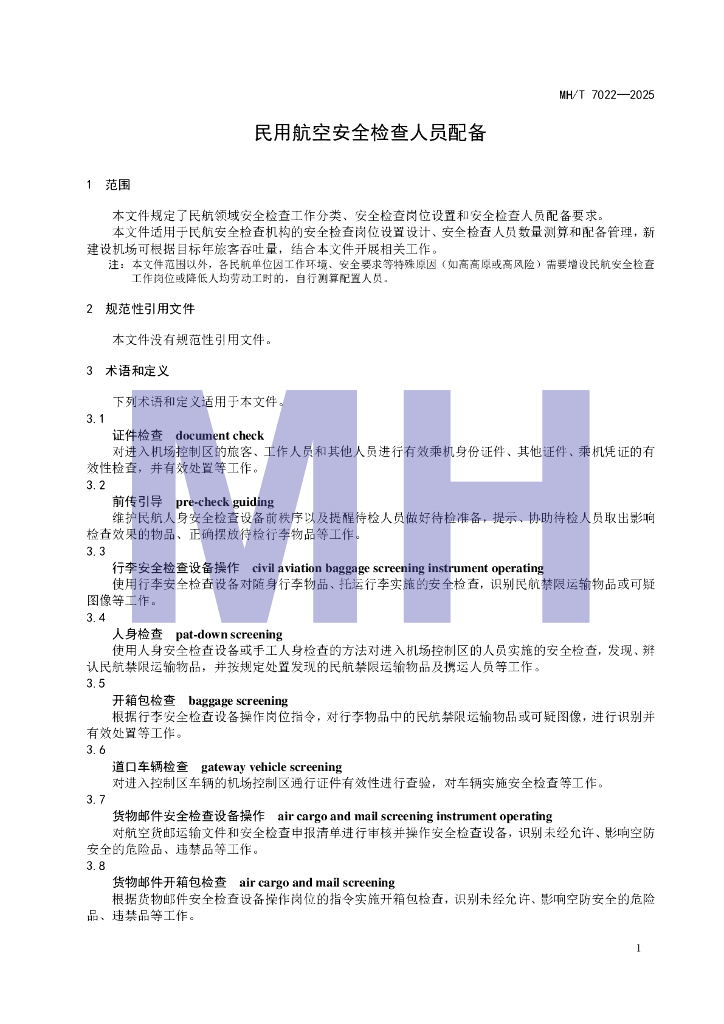 MH/T 7022-2025 民用航空安全检查人员配备