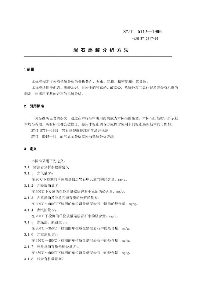 SY/T 6015-1994 油气显示分析仪岩石热解分析方法