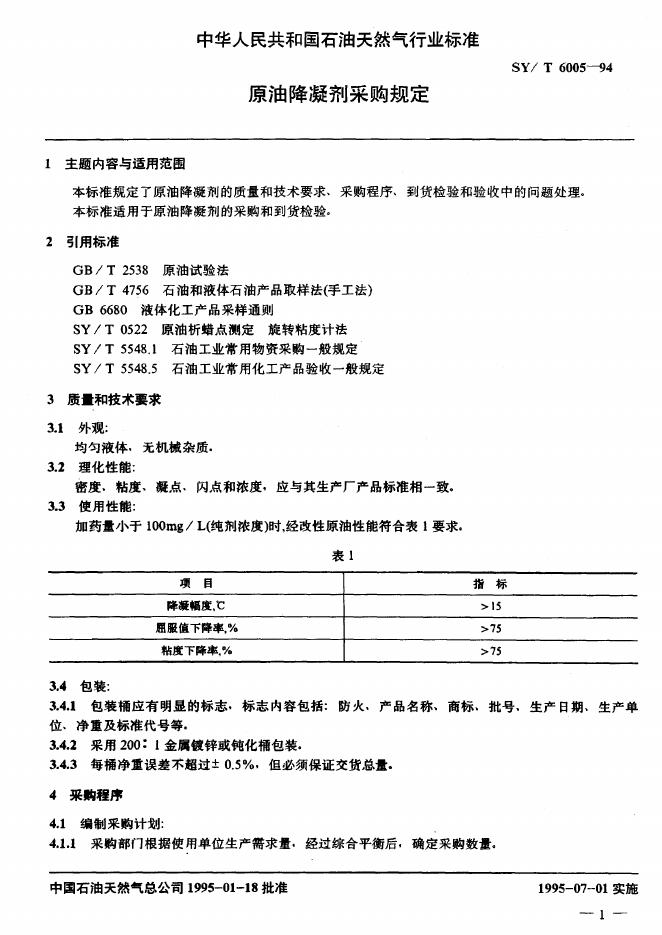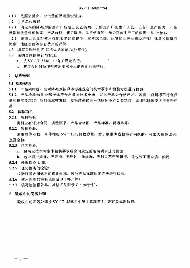 SY/T 6005-1994 原油降凝剂采购规定