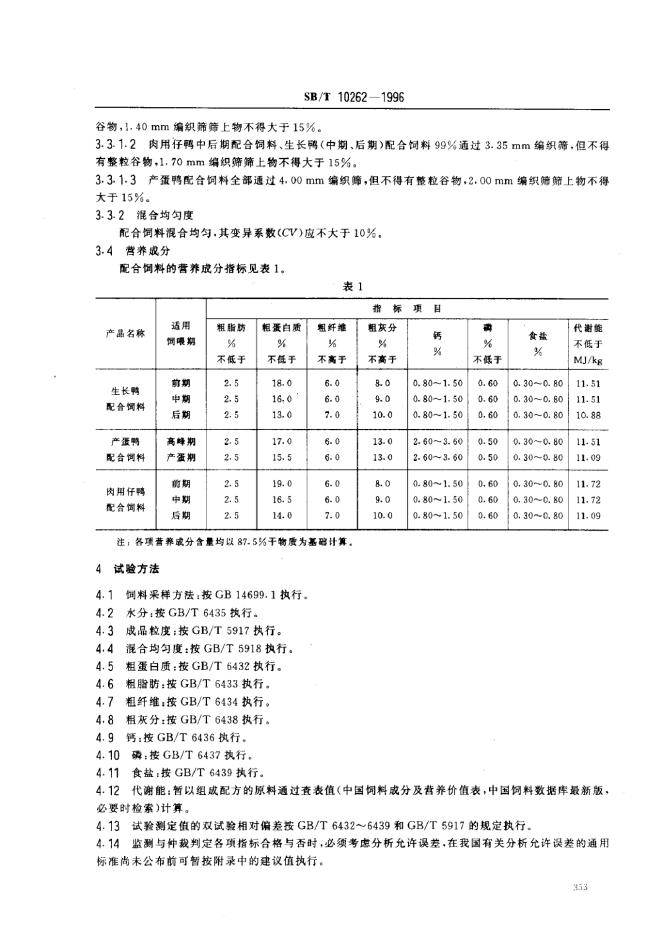 LS/T 3410-1996 生长鸭、产蛋鸭、肉用仔鸭配合饲料