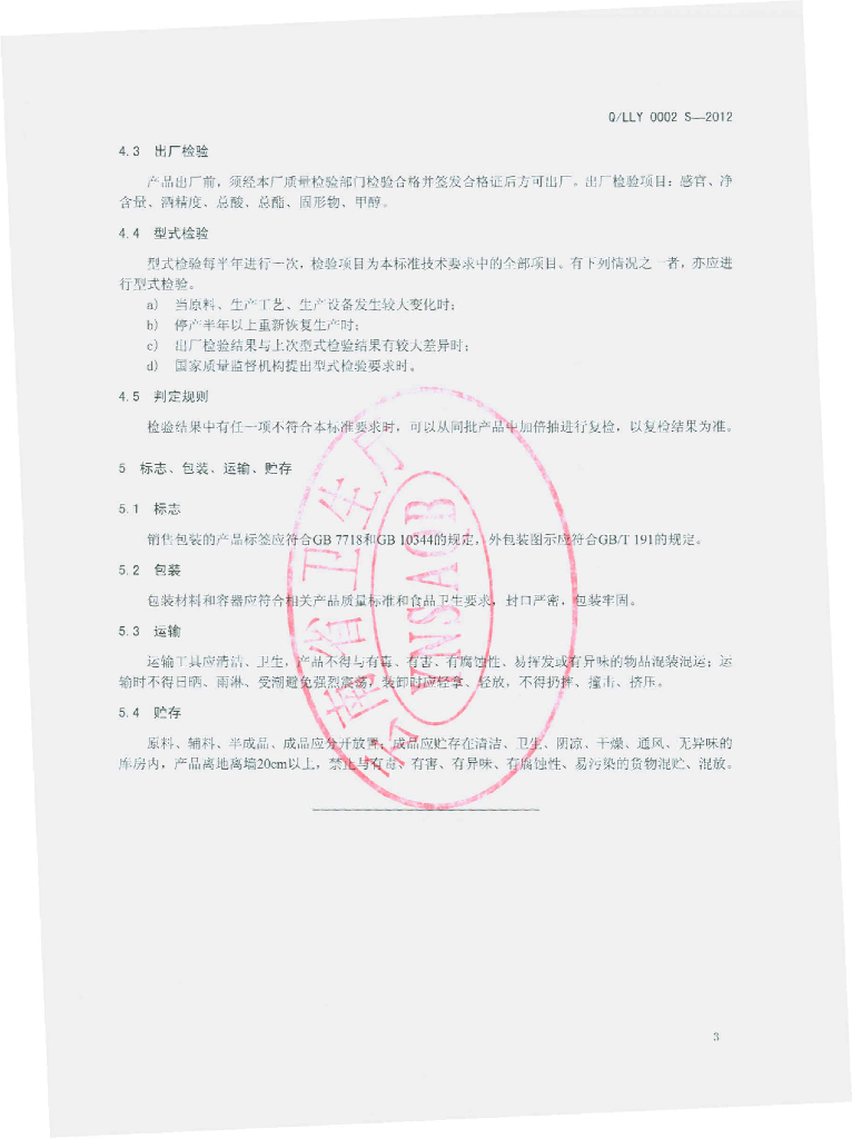 Q/LLY 0002S-2012 白酒