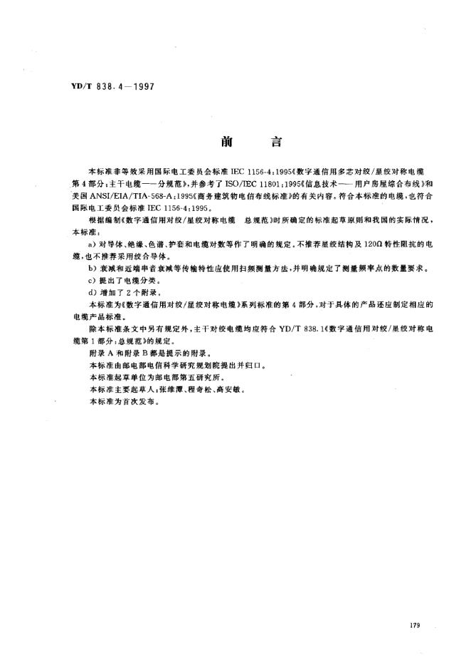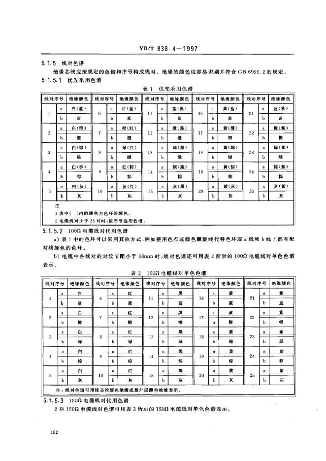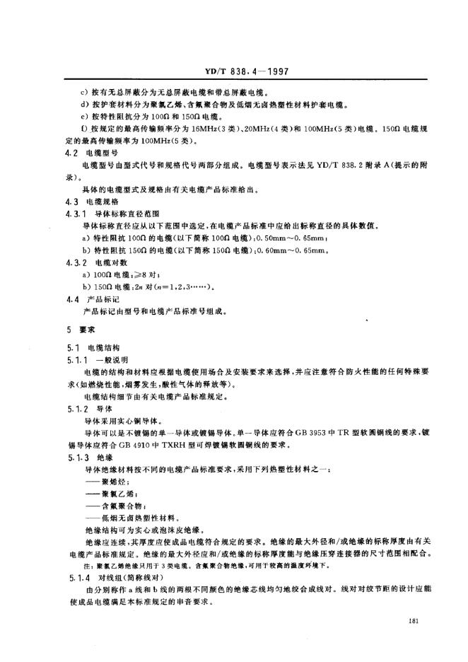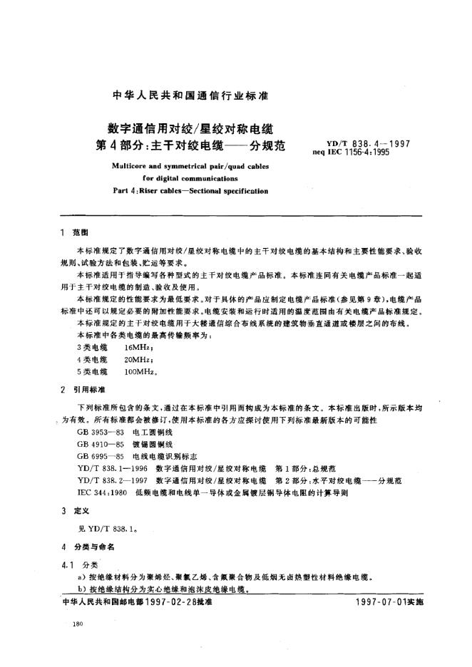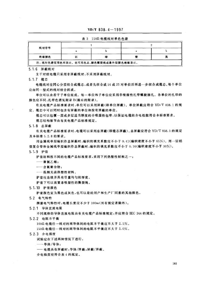YD/T 838.4-1997 数字通信用对绞/星绞对称电缆 第4部分:主干对绞电缆-分规范