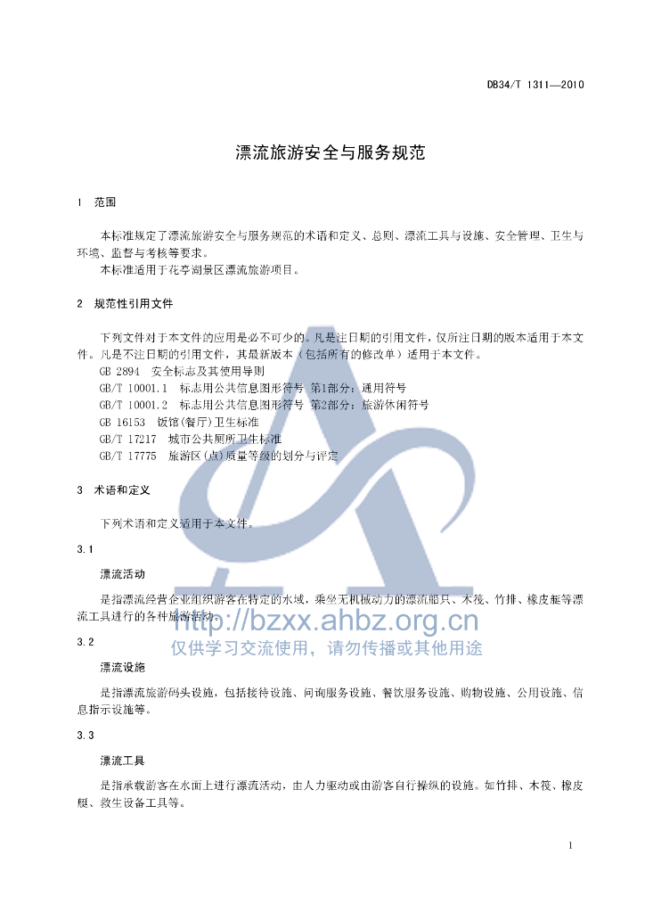 DB34/T 1311-2010 漂流旅游安全与服务规范