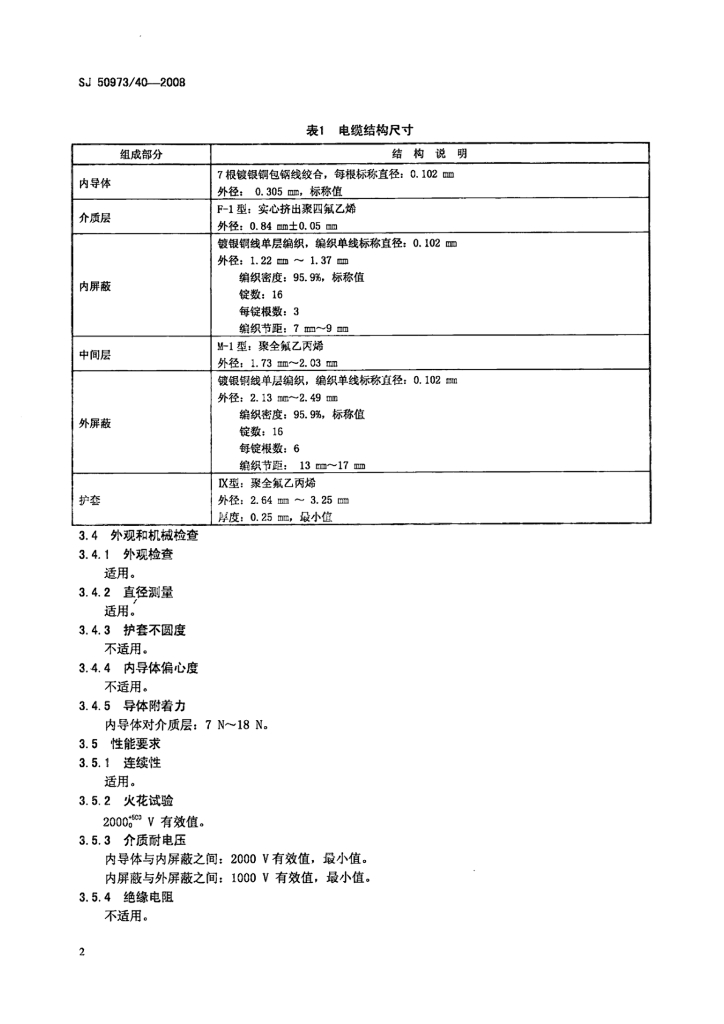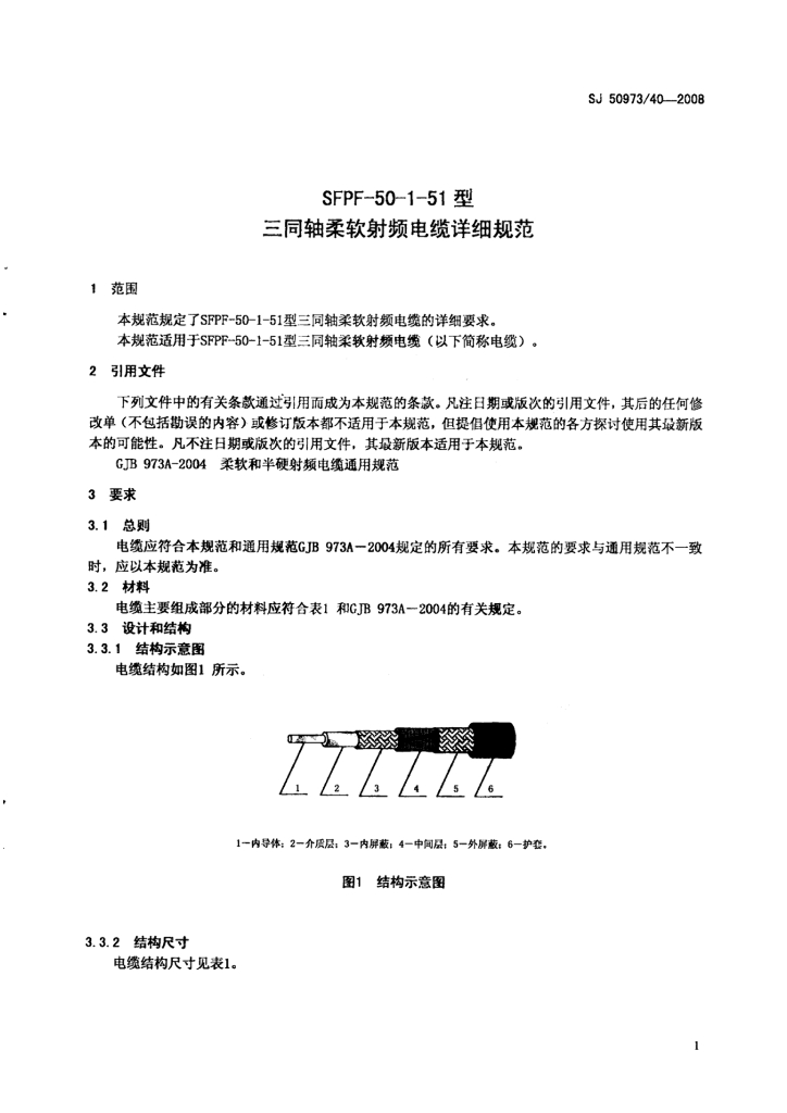 SJ 50973/40-2008 SFPF-50-1-51型三同轴柔软射频电缆详细规范